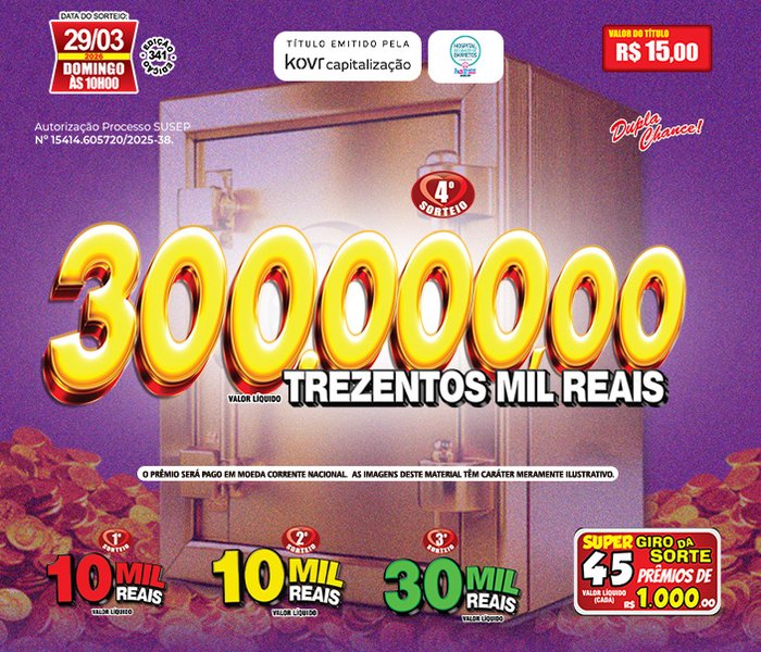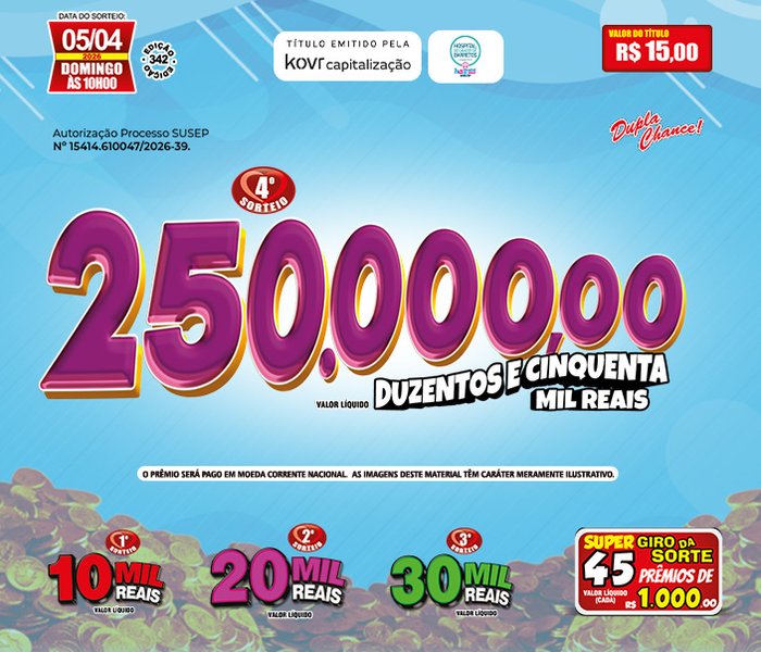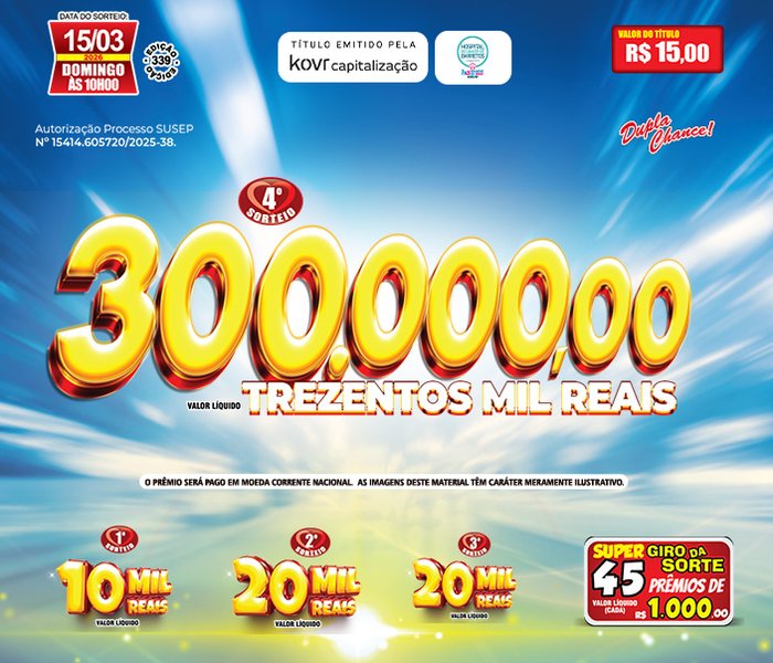Sorteios realizado aos Domingos, às 09h00, ao vivo através TV Record e You Tube.