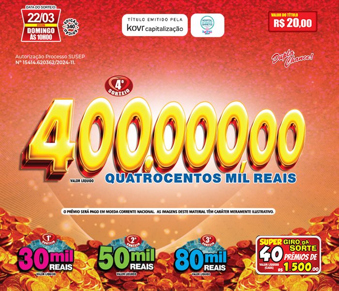 Sorteios realizado aos Domingos, às 09h00, ao vivo através TV Record e You Tube.