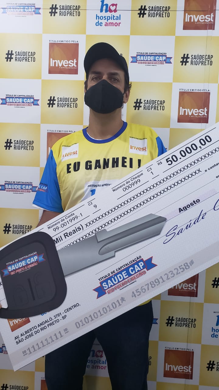 Cleber Minduca Ferreira, da cidade de Catanduva, de 40 anos de idade, é um dos contemplados do quarto sorteio do Saúde Cap do dia 18 de outubro de 2020. Ele dividiu o prêmio que valia uma T-Cross mais R$ 35 mil e levou para casa R$ 67.500,00. O ajudante de pedreiro estava passando por dificuldades de trabalho e agora o prêmio dará uma guinada na sua vida.