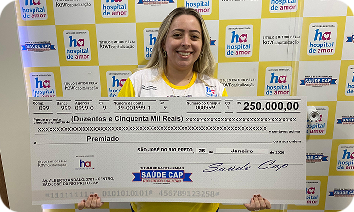 Além de concorrer a valiosos prêmios, você ajuda o Hospital de Amor (Hospital de Barretos/Fundação Pio XXII), cedendo o direito de resgate do título.
