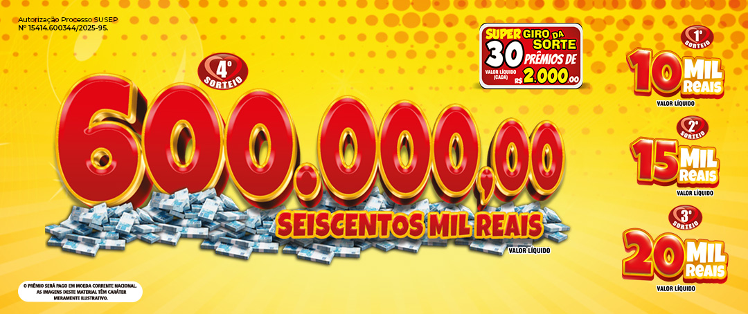 30 PRÊMIOS DE R$ 2.000,00 (cada) - Valor líquido
