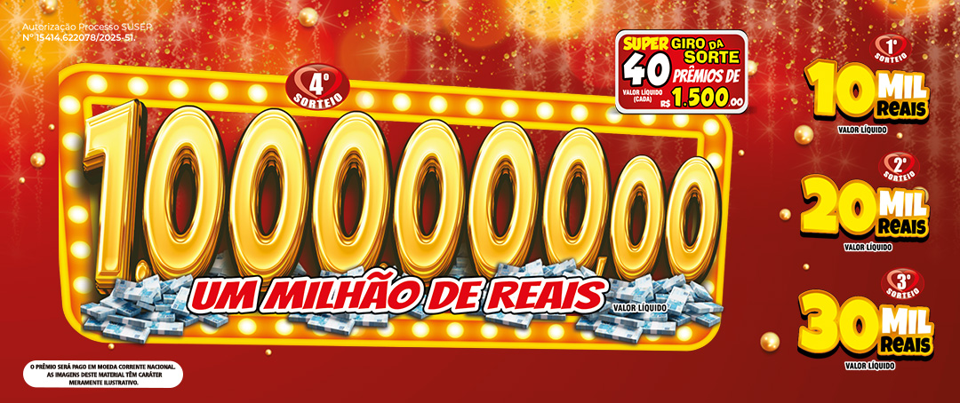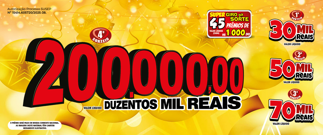 45 PRÊMIOS DE R$ 1.000,00 (cada) - Valor líquido